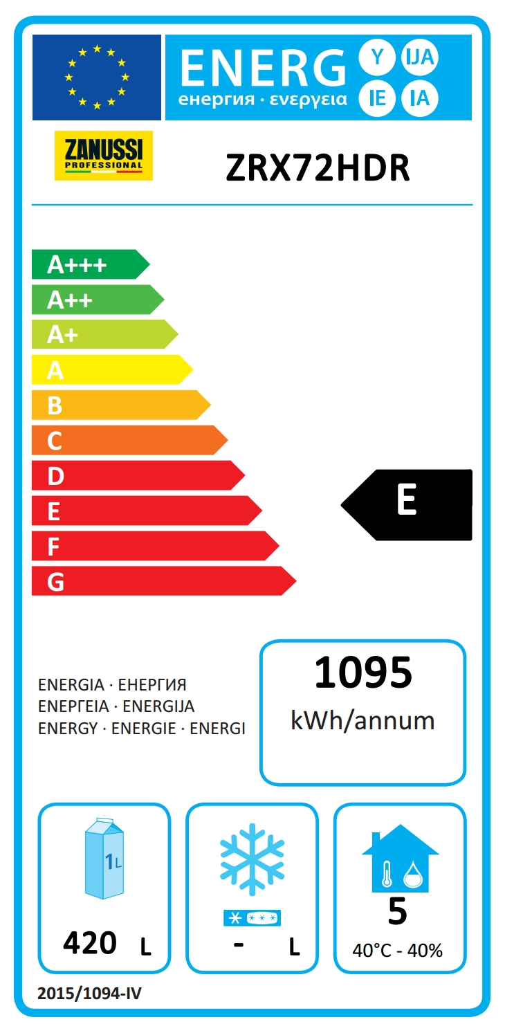 • Tipo de modelo EU Regulation (2015/1094): armario de refrigeración vertical