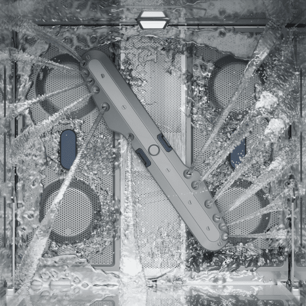 No importa cómo se coloquen los artículos, el brazo de lavado integrado garantiza un alcance de 360°.