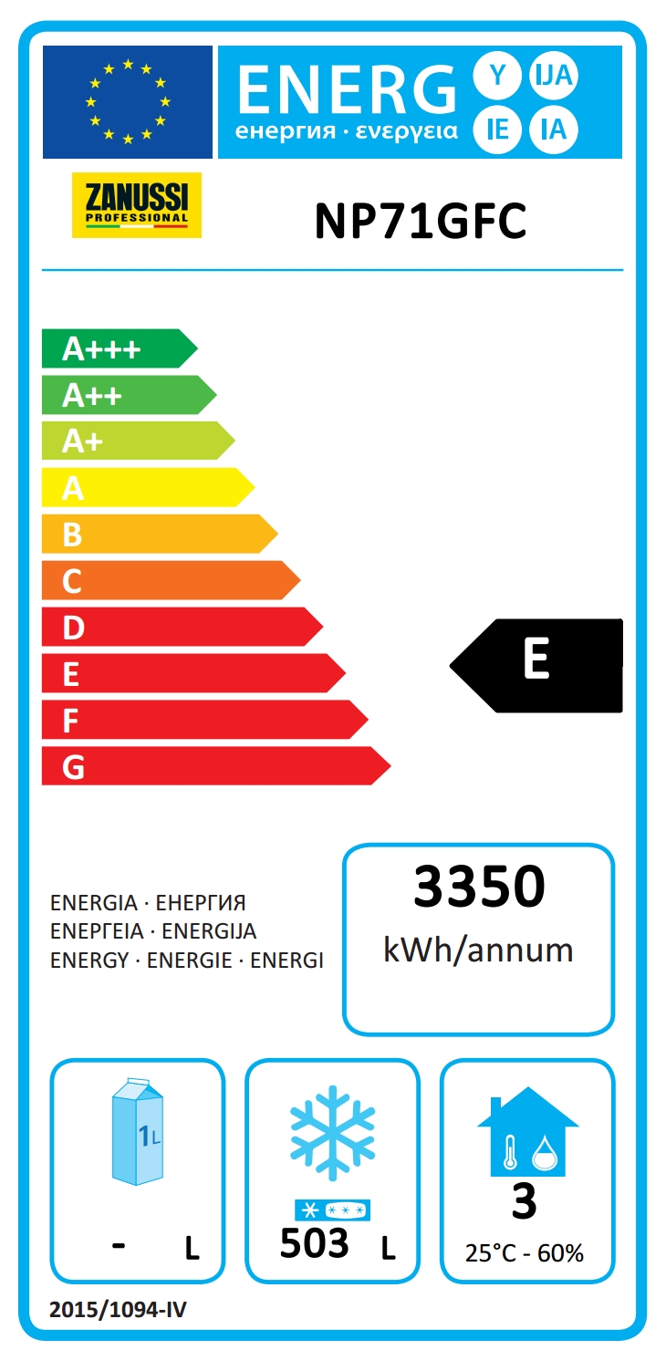 • Tipo de modelo EU Regulation (2015/1094): armario de congelación vertical